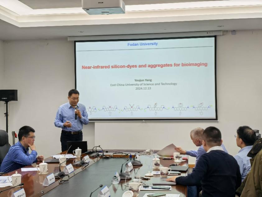 华东理工大学教授杨有军作题为“Near-Infrared Silicon-Dyes For In Vivo Bioimaging”的报告,介绍了近红外荧光染料在体内成像中的优势,如高组织穿透深度、低光损伤和优异生物相容性。他展示了团队开发的硅染料在深红光与近红外波段的卓越性能,特别是在小动物多通道及超分辨成像中的应用。此外,他还介绍了超短波红外染料的开发,为光声成像与多模态成像开辟了新方向,显著拓展了体内成像的潜力。