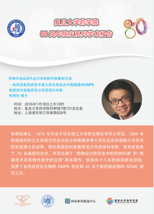 欢迎参加PO18 80周年院庆系列学术报告-药物代谢及药代动力学的研究策略和方法