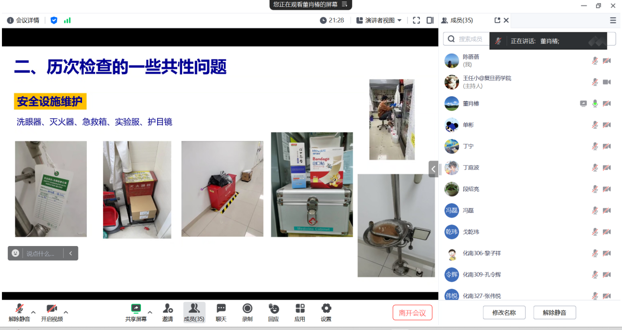 通过此次安全工作会议,药物化学系再次明确课题组负责人是实验室安全责任体系的基石,是直接责任人,实验室安全员是最基层的监督者执行者,并商定将安全工作会议作为一种制度延续下去,在学期末定时召开。