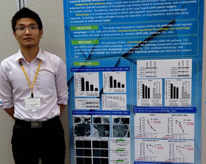 2015年6月2日至5日,日本发育生物学会第48届年度会议(48thAnnualMeetingoftheJapaneseSocietyofDevelopmentalBiologists)在日本筑波(Tsukuba,Japan)举行,本教研室博士生李玉彬、王子玉因在细胞自噬领域的相关研究成果获得资助参加本次会议。会议期间,李玉彬、王子玉分别以FlashTalk、OralPresentation及Poster等多种形式展示了自己的研究成果,并获得同行好评。图1:李玉彬在日本发育生物学会第48届年度会议上展示研究成果图2:王子玉在日本发育生物学会第48届年度会议上展示研究成果2015年7月16日至18日,日本肿瘤内科学会第13届年会(13thAnnualMeetingoftheJapaneseSocietyofMedicalOncology)在日本札幌召开,大会主题为“FightagainstDeadlyCancer-CollaborationsamongScience,CancerCareandSociety”,本教研室博士生范佳君、李玉彬因肿瘤治疗领域的相关研究成果获得大会资助参加本次会