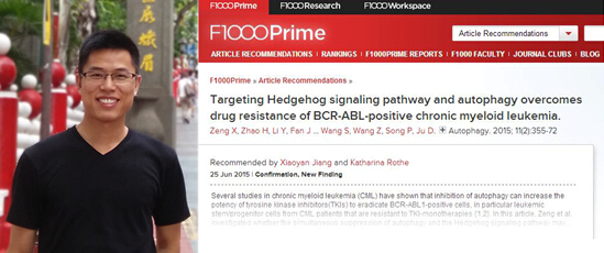 2015年2月20日,自噬研究领域国际顶级杂志Autophagy(IF 11.753)在线发表了生物合成药物化学教研室的研究论文“Targeting Hedgehog signaling pathway and autophagy overcomes drug resistance of BCR-ABL-positive chronic myeloid leukemia”。