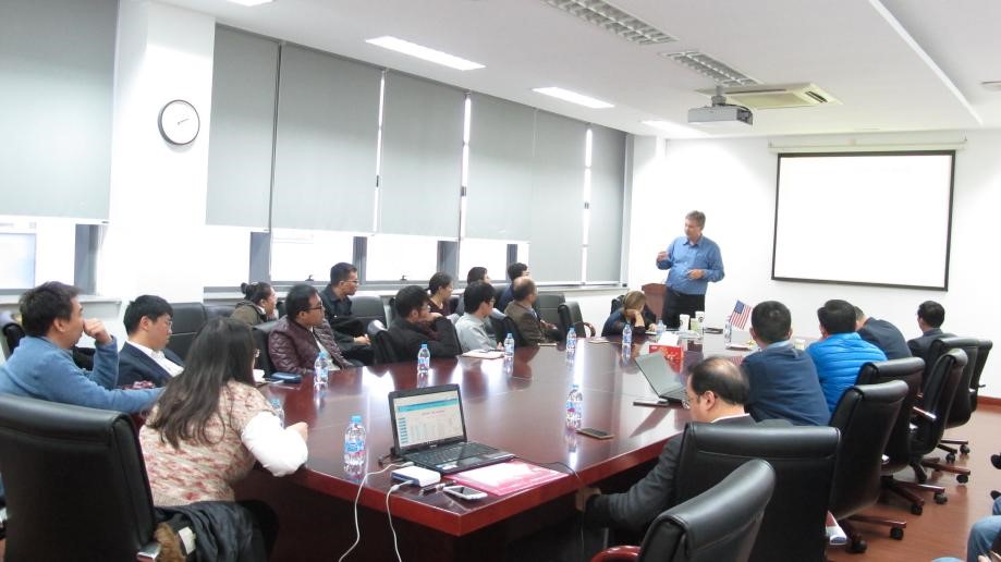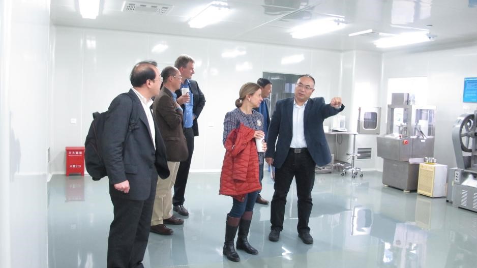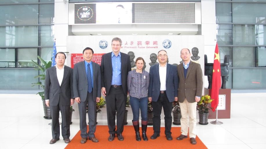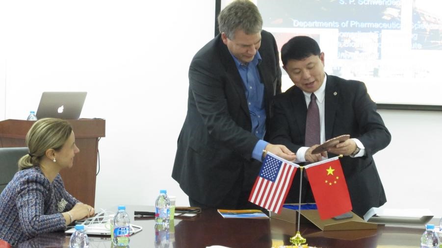 4)2016年11月22日下午,PO18 药剂教研室邀请美国密歇根大学制药科学系主任Steven P. Schwendeman 教授夫妇访问PO18 。在PO18 科研楼晶晖厅王明伟院长首先向Schwendeman教授夫妇的来访表示欢迎,并介绍了PO18 的情况。随后,PO18 副院长、重点实验室副主任王建新教授主持了Schwendeman教授题为“Mechanistic evaluation of in vitro and in vivo release from PLGA microspheres employing a cage model”的学术报告,他着重介绍了PLGA纳米微球的体内外评价和其课题组的研究情况。听众们饶有兴趣地听取了报告,并与Schwendeman教授进行了交流。大家认为,Schwendeman教授带来了很多新的理念和想法,对今后的科研工作具有帮助。随后,Schwendeman教授夫妇在重点实验室主任陆伟跃教授和副主任王建新教授的陪同下参观了科研楼九楼的中试实验室和一楼仪器测试中心。