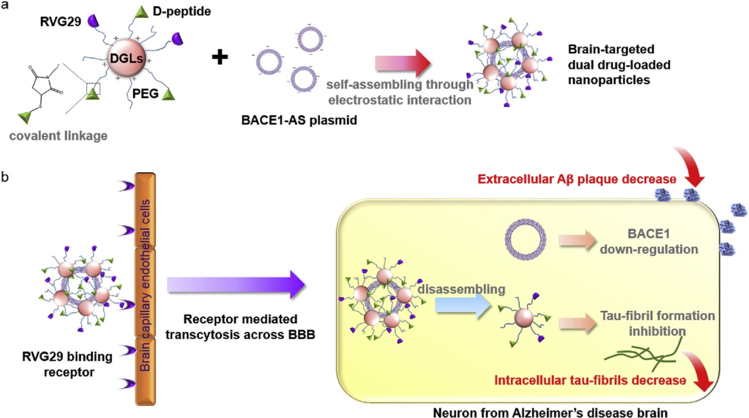 蒋晨课题组针对阿尔兹海默症的治疗,发展了一种新型多功能脑靶向的基因-多肽药物共载运系统
