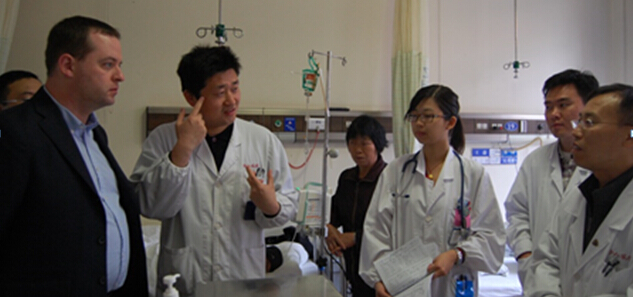 4月16日,Niemi教授访问了复旦的两大附属医院:中山医院和华山医院。在中山,药剂科主任吕迁洲教授首先会见了Niemi教授,双方交流了各自临床药学方面的情况。随后,Niemi教授在临床药师的陪同下参观了心内科病房,李晓烨老师向Niemi教授现场展示了临床药师的日常查房工作,对多个病例进行了讲解并和他进行了讨论。中山医院的临床药学工作让Niemi教授赞叹不已。在华山,焦正副主任首先向Niemi教授介绍了华山医院的历史沿革、特色专业及医院临床药学工作的现状等。在随后的参观中,焦教授介绍了医院的国际部、门诊药房的工作流程和中药库房。Niemi教授惊叹于门诊药房的自动化程度和巨大的处方量,并表现出对中药的浓厚兴趣。