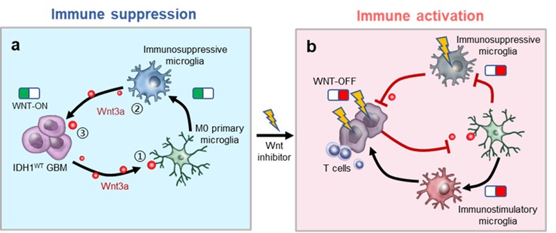 抑制Wnt/β-catenin通路切断抑炎型小胶质细胞和胶质瘤细胞间联络,激活免疫响应