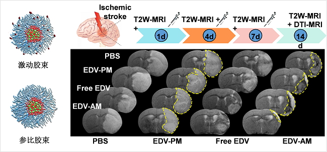 图2. 磁共振成像发现激动胶束提高缺血部位体积缩小