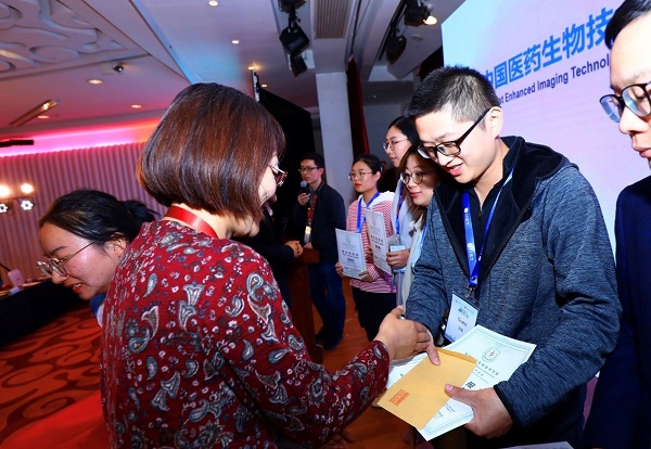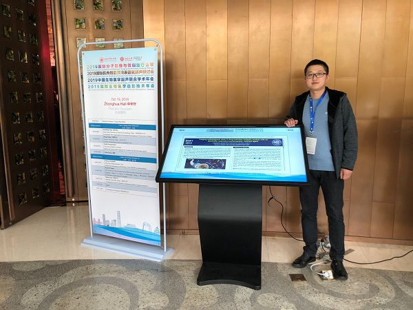 2019年10月18号到9月20号,博士研究生王聪、段文佳与硕士研究生李昕蔚赴北京参加由中国医药生物技术协会造影技术分会联合各相关组织主办,北京大学第三医院及北京大学工PO18 承办的2019年国际分子影像与微创治疗会议(MIMT)。三人分别就题为“Imaging of the epileptogenic zone in drug-resistant epileptic models with an electricity-responsive paramagnetic contrast agent”,“Brain tumour surgery guided by intraoperatively demarcating the metabolically acidic margins”及“Surface-enhanced resonance Raman scattering-guided brain tumor surgery showing prognostic benefit in rat models”工作进行壁报展示。博士研究生王聪工作被评为中国医药生物协会造影技术分会“最佳墙报奖”。