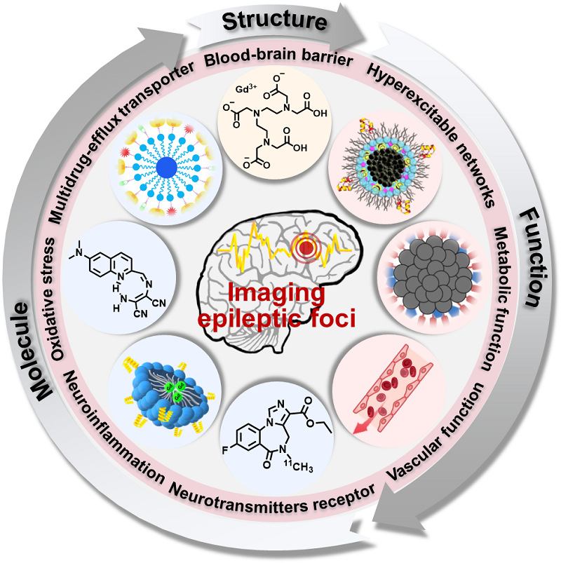 癫痫是一种常见的神经功能障碍性疾病,全球人口患病率接近1%,每年新增近500万。虽然目前临床批准20多种抗癫痫药,但仍有约30%癫痫患者无法通过药物有效控制,被称为难治性癫痫。相比普通癫痫患者,难治性癫痫患者伴有认知发育障碍,严重的社会歧视,死亡率和经济负担也显著增加。手术切除致痫灶是治疗难治性癫痫最有效的方法,相比于药物治疗,可使患者死亡率下降约3倍,无发作可能性提高25倍。准确定位致痫灶是实施手术干预的前提。临床常用脑电图、磁共振成像、正电子发射断层扫描、单光子发射计算机断层扫描等技术定位致痫灶,但由于癫痫的异质性和致痫灶隐匿性,临床仅有不到1%的癫痫患者最终接受了手术治疗。因此,开发可反映致痫灶演进的生物标志物并构建特异性良好的分子探针是致痫灶可视化的关键。