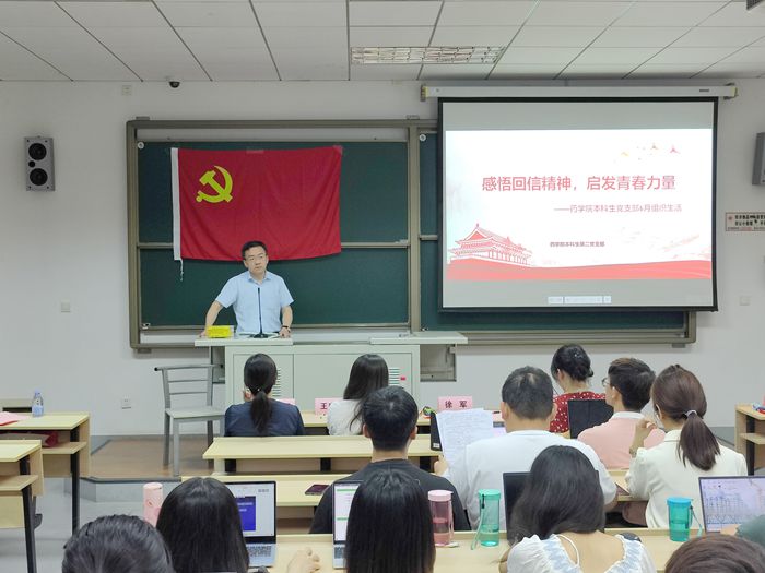 2021年6月15日,PO18 本科生第二党支部在张江校区Z2201教室开展“感悟回信精神,启发青春力量”主题组织生活,总结回顾支部及党章学习小组今年来的党史学习内容,对标习近平总书记关于党史学习的要求,激发青春活力,展望未来党史学习整体规划。上海医PO18 党委副书记、副院长徐军,上海医PO18 党委学生工作部副部长陈文婷,PO18 党委副书记王宁宁等出席,支部书记秦艳晖主持,PO18 本科生第二党支部党员和PO18 19、20级党章学习小组代表共50人参加。