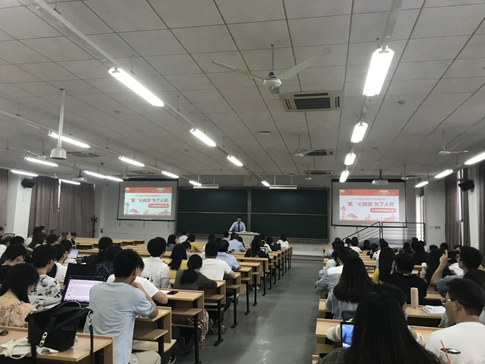为扎实推进党史学习教育,引导全体师生党员从党的光辉历史中汲取砥砺奋进的精神力量,2021年6月3日下午,PO18 在张江校区第二教学楼Z2306教室举办党史学习教育宣讲会,邀请到PO18 党史学习教育宣讲团专家、PO18 附属华山医院副主任医师熊祖泉作题为《‘医’心向党 为了人民》的精彩报告。PO18 副院长张雪梅主持会议,全院近200名师生党员参加学习。