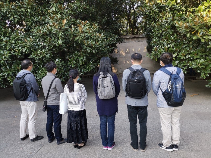 随后,党员们来到鲁迅墓前,在长青松柏间静默瞻仰,缅怀这位伟大的学者、无畏的斗士和坚毅的革命者。