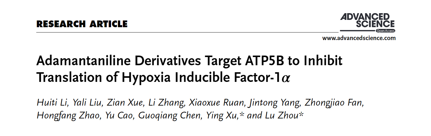 Recently, Professor Lu Zhou's research group at the School of Pharmacy, Fudan University, discovered a novel mechanism to regulate HIF-1α transcriptional activity. This work was published online in the journal Advanced Science entitled as Adamantaniline Derivatives Target ATP5B to Inhibit Translation of Hypoxia Inducible Factor-1α.