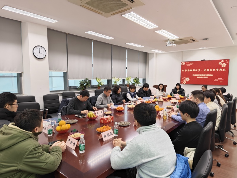 与会领导首先向各位学生代表致以新春的诚挚问候,并详细询问了同学们的学习生活情况。当了解到同学们已经在高水平期刊发表研究成果,但仍然放弃假期奋战在实验室的情况后,与会领导充分肯定了大家的努力,同时叮嘱大家要劳逸结合、多和家人联系。当一位香港学生在留沪工作和返港工作间犹豫不决时,与会领导也积极提出建议,打消学生的顾虑。