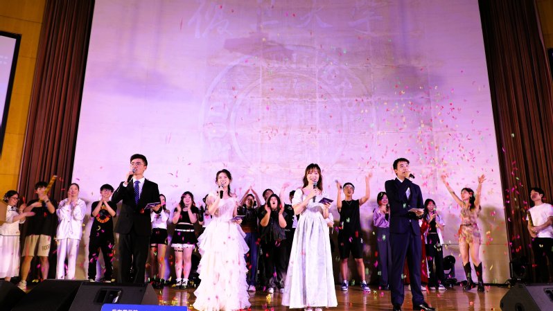 纯人声奏响着悠扬的旋律,由DEMO合唱团带来的阿卡贝拉演绎《perfect》,诉说着今晚每一处肆意挥洒的完美;五月将去,盛夏将临,由徐姝琳带来的国风独舞《咏荷》,为五月之风增添了独属夏日的碧荷清香;一份爱情中不愿妥协的勇气,一种勇于追求真爱的感情,由谢梓熠、刘博韬带来的歌曲《don’t》,动感的旋律中是对爱情的歌颂与向往;由2020级同学们上演的《毕业大戏》,以诙谐幽默的打开方式回望四年的日日夜夜,别离笙歌起,滴定滴不尽的,永远是那一起走过的点滴。