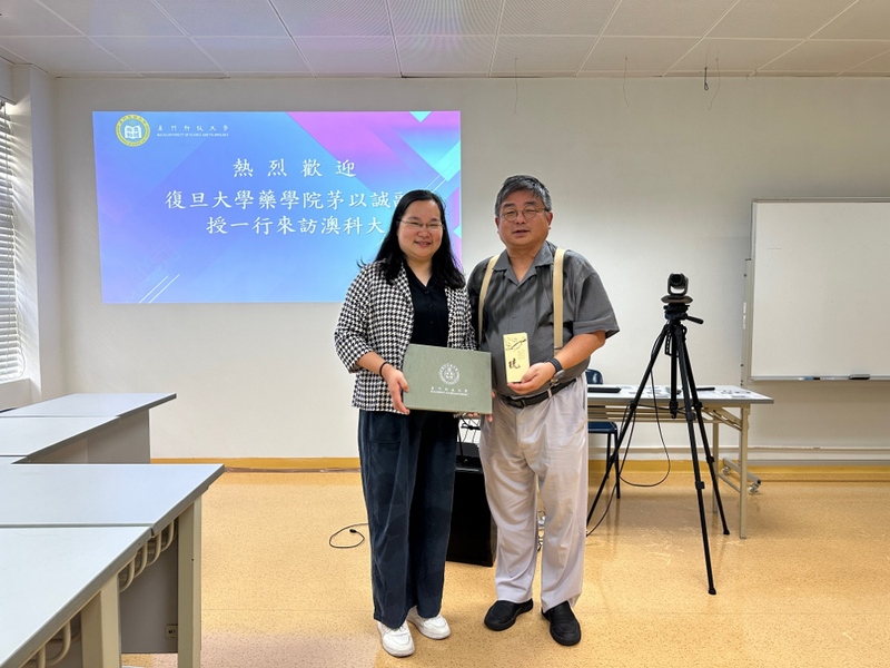 接着,两校师生进行了深入交流。朱依谆院长和茅以诚老师相互介绍了双方的老师和同学,澳科大研究生教导主任叶丽和本科生教导主任李欣志分别向同学们介绍了澳科大研究生和本科生的招生方案和培养计划,表示欢迎同学们以后到澳科大深造。澳科大表示“复旦PO18 此次来澳交流访问将有助于加强两校之间的合作。期待此次交流能够为两校师生开启更多合作的新篇章,造福社会,推动药物科学与健康产业的发展”。最后,双方交换了校名纪念品,为本次交流活动画上了圆满的句号。