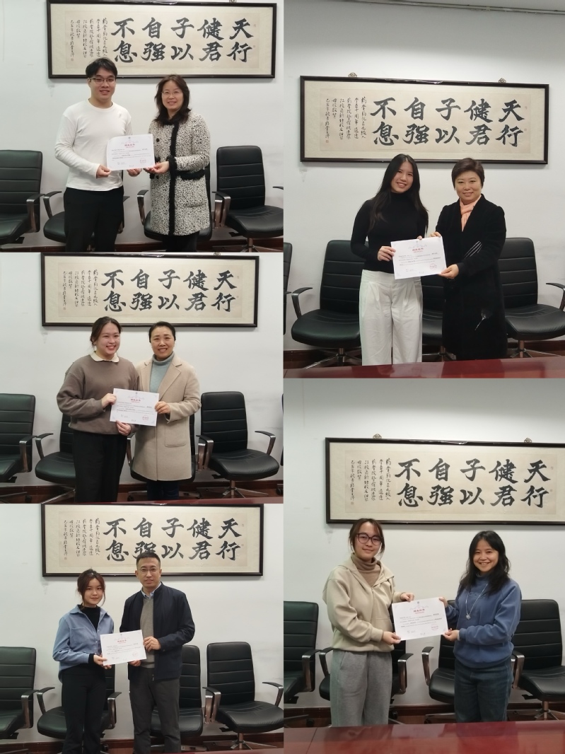 导师们对参加本次交流学习的同学们的表现给予肯定,称赞他们的学习和适应能力,并为各自带教的学生颁发证书以作纪念。