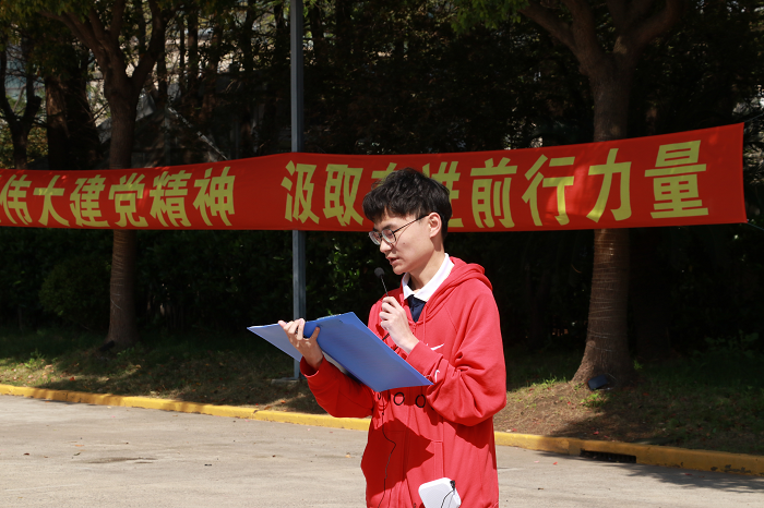 随后,预备党员代表、PO18 2020级本科生李孟阳发言,他表示入党宣誓具有重要的意义,未来定将牢记誓言,不负组织的期望,发扬党的优良传统,希望各位预备党员在今后各自的岗位上更加努力的学习和工作,充分发挥党员的先锋模范作用,无愧于共产党员的光荣称号!