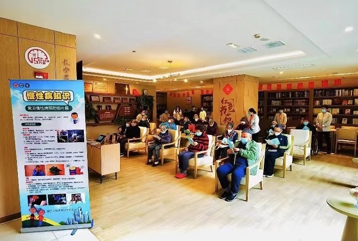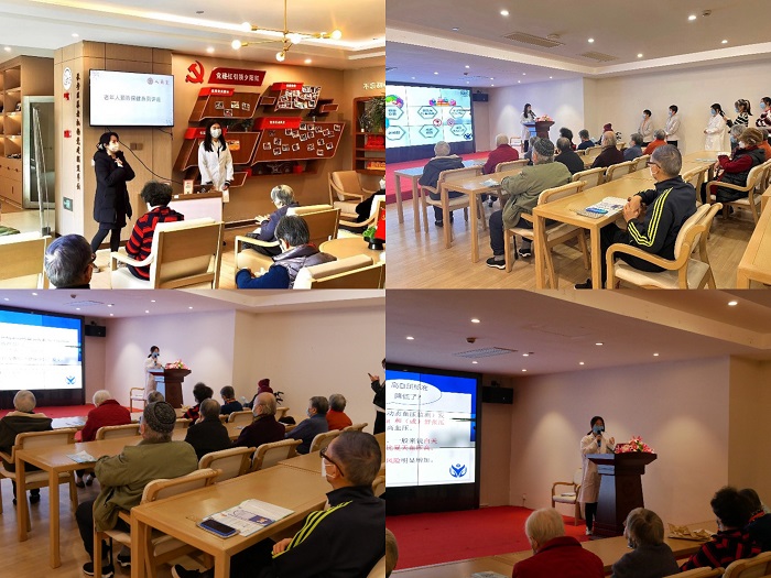 2月19日早,PO18 老师和同学们来到了位于上海市长宁区的人寿堂颐养院,为等候在此的21位社区老人做健康科普宣讲。PO18 同学首先为老人们分发了关于安全用药方面的科普宣传册,随后,来自“法莫西”学生讲师团的赵璐卓同学为老人们讲解了阿尔兹海默症的相关科普知识。她从“正确认知疾病”和“疾病的预防及干预”两个方面作了讲解,介绍了常用的治疗药物和非药物治疗措施,并引用生动的现实例子,引导老人们打破疾病偏见,正确面对疾病发生,知己知“彼”,早诊早“智”。