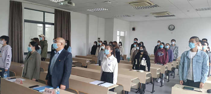 仪式在响亮的国歌中开始。首先,王宁宁老师向学员们介绍培训安排以及考核标准,并宣读纪律要求。她谈到,本次培训班的培训由两部分组成,分别是理论学习和实践活动。以专题讲座、座谈讨论、实践活动等形式集中培训学员对党史、党的理论的认识和理解,从历史、从学科等角度深入理解党的理论,在实践中加深对党的认识。用多种方式让学员在培训过程中思考入党初心,积极向党组织靠拢,结合对新时代青年的要求,联系自身实际,确定奋斗终身的信念。