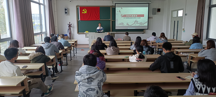 随后,2021级药物分析硕士研究生张志辉作为学员代表发言。她提到奉献、奋斗是中国共产党人共同具有的优秀品质。她结合自身成长经历,向大家讲述了她是如何被周恩来总理的事迹激励,如何被疫情封控期间的优秀党员同志鼓舞,她以周总理为榜样,以优秀的党员同志们为榜样,表达了对成为一名党员先锋的热切渴望,希望能尽己所能为党和人民的事业奋斗终身。