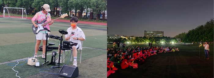 10月3日晚上六点,PO18 在张江校区操场举办了“爱国荣光,乐动张江”草坪音乐会活动。本次音乐会由PO18 Demo合唱团组织策划,各院系同学积极报名准备了近30首精彩的曲目,傍晚时分大家戴着口罩在草坪席地而坐、共同欣赏。不同类型的歌曲或欢快活泼,或安静诉说,带领大家沉浸在音乐的世界里。现场气氛高涨融洽,伴随歌声,不时传出现场观众的应援和合唱。最后,全场一起合唱了《国家》,将现场的氛围点燃到了最高点,草坪音乐会激发了同学们爱国热情和凝聚力、向心力,进一步增强新时代学子的理想信念。