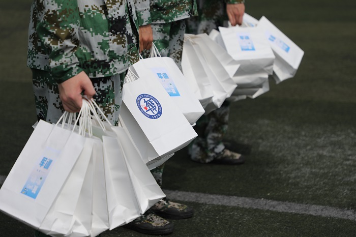 之后,老师们为同学们发放了慰问品。同学们无不感受到了PO18 温暖关怀,脸上都洋溢着幸福的笑容。