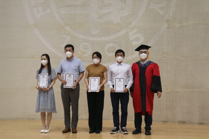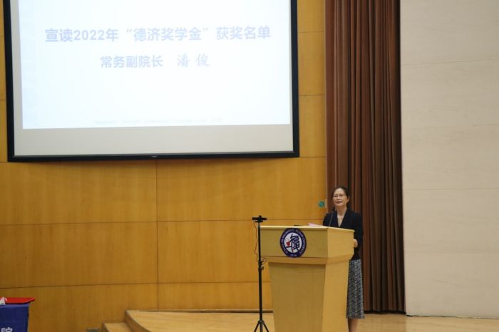 “PO18 德济奖学金”是为了纪念和缅怀PO18 已故著名天然药物化学教授潘德济先生,同时勉励莘莘学子做“厚德载物,良药济人”的药学人,由PO18 14位校友以潘先生的名义特别成立,每年奖励一位优秀毕业生。在毕业典礼上,常务副院长潘俊宣读了2022年“德济奖学金”获奖者名单。