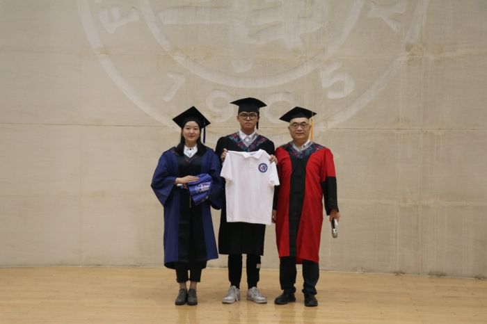 临别之际,全体2022届毕业生为PO18 精心准备了一份毕业礼物。2022届本科毕业生林晨腾、硕士毕业生王常悦作为代表向PO18 赠送了这份礼物。毕业礼物用PO18 本硕博全体共239位毕业生的名字,共同组成了以科研楼为主体的万字画。一笔一画都象征着奋斗拼搏的日日夜夜,也诉说着对PO18 和老师们的感激和不舍。PO18 党委书记王建新代表PO18 接受毕业礼物并赠送PO18 纪念衫和纪念伞。纪念礼物包含着毕业生的回忆,也承载着对未来的期许。希望毕业生们在未来不畏风雨,在劈波斩浪中开拓前进,在攻坚克难中创造业绩。