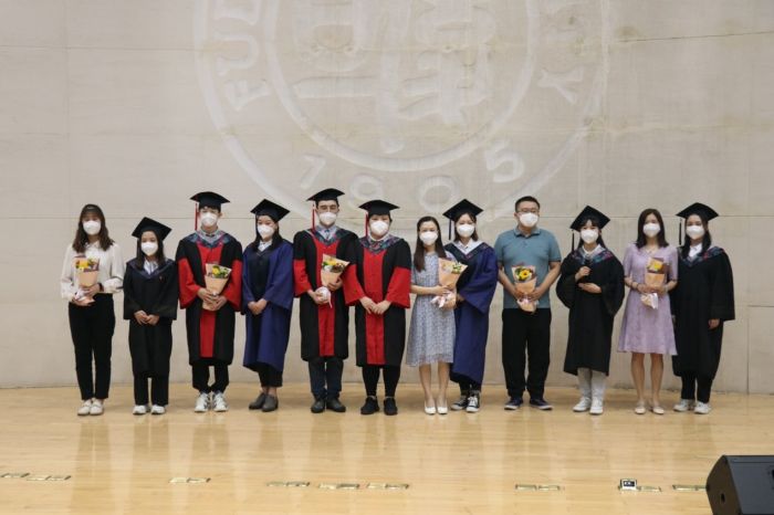 最后,全体毕业生共同唱响复旦校歌。一声声颂唱,告别几年飞逝时光匆匆;一道道旋律,不忘PO18 老师教诲谆谆。激昂的歌声回响在报告厅内,让我们一同祝愿毕业生们前途似锦,未来可期!