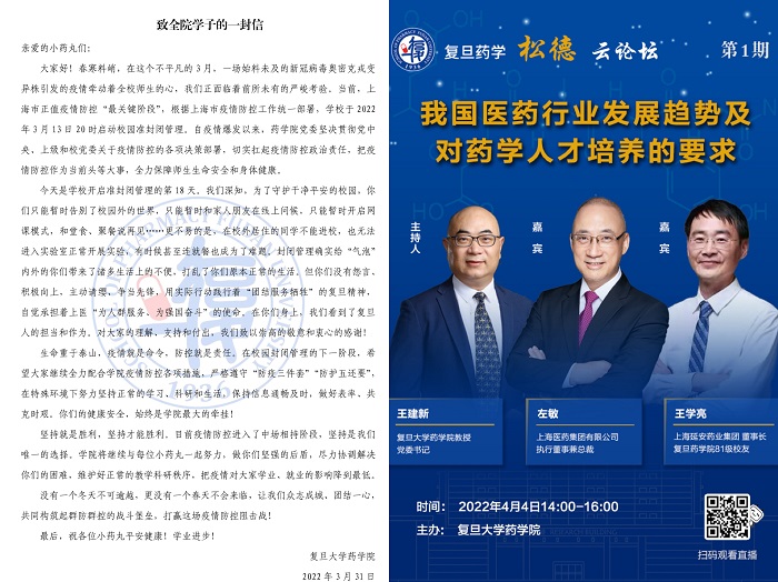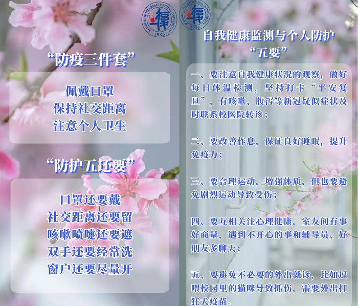 会后,各系/中心教学主任积极传达会议精神,扎实推进工作落实。PO18 进一步加强工作指导,制作防疫宣传海报,在PO18 公众号平台发布致全院学子的一封慰问信,面向全体师生开设“松德云论坛”,邀请业内杰出专家和优秀校友畅谈药学人生,为同学们指点迷津,让所有学生切实感受到来自PO18 的支持和关怀。PO18 教师们响应号召、齐心上阵,查漏补缺,通过微信、电话、邮件等方式关心学生的学业、生活和思想状况,尤其关注校外居住的研究生群体,保证特殊时期关心关爱不断线,并向PO18 第一时间反馈掌握的信息。PO18 根据老师们提供的信息,将问题分类汇总为科研迷茫、毕业焦虑、生活困难、不良情绪等几个方面,逐一采取针对性帮扶措施,并在4月7日全院大会时向老师们详细通报,介绍推广部分导师的经验做法。