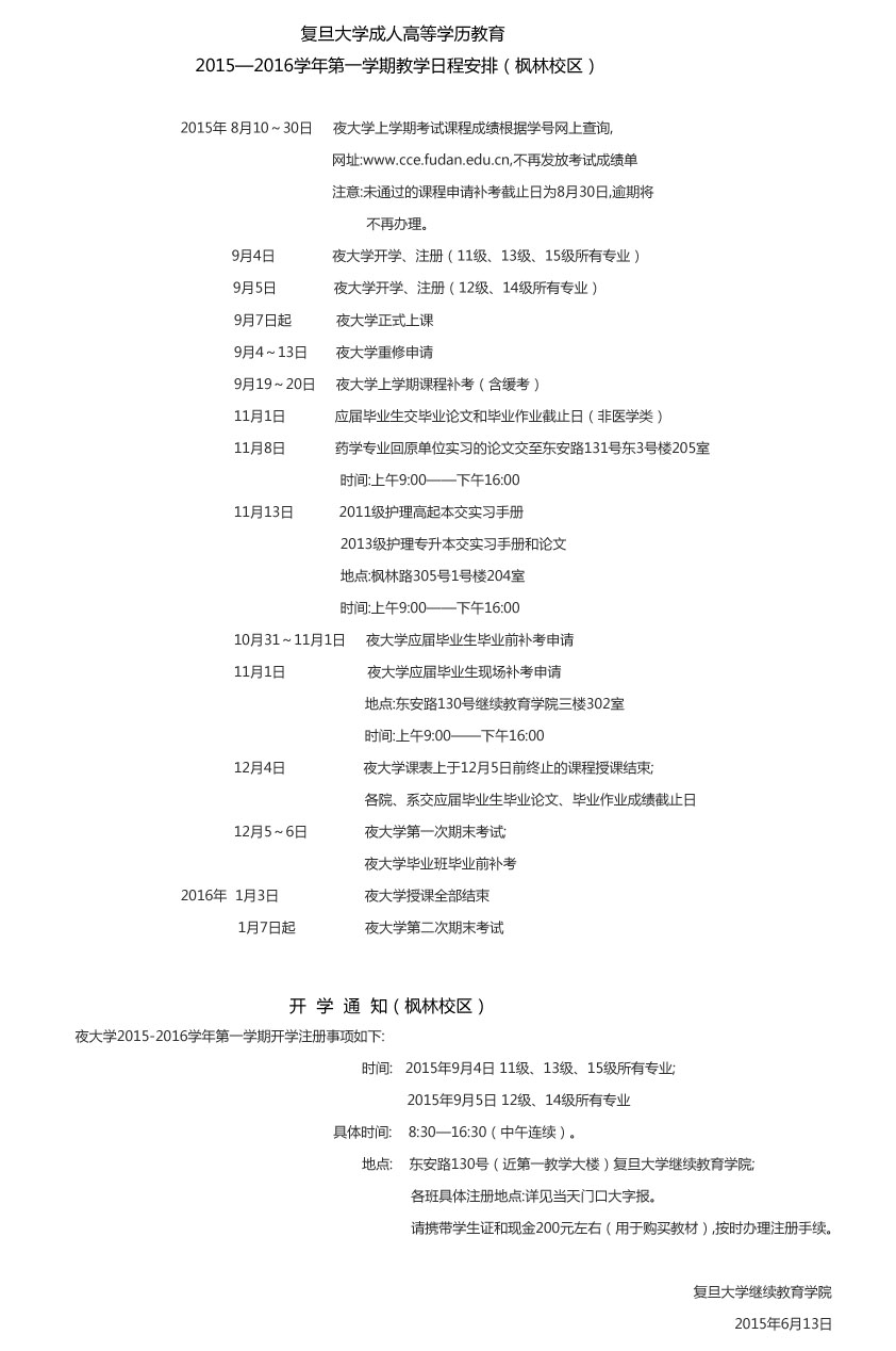 教学日程安排及开学通知